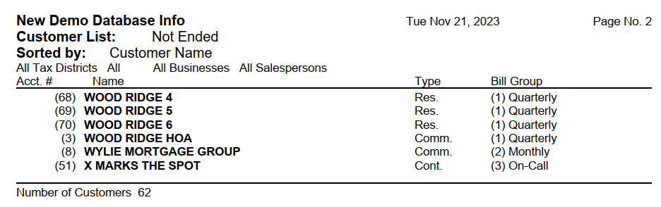 The customer list is one of the most commonly run reports in Trash Flow. It's a way to get a list of all customers or of a given subset of customers. This guide explains how to create the report. It includes a sample report at the bottom.