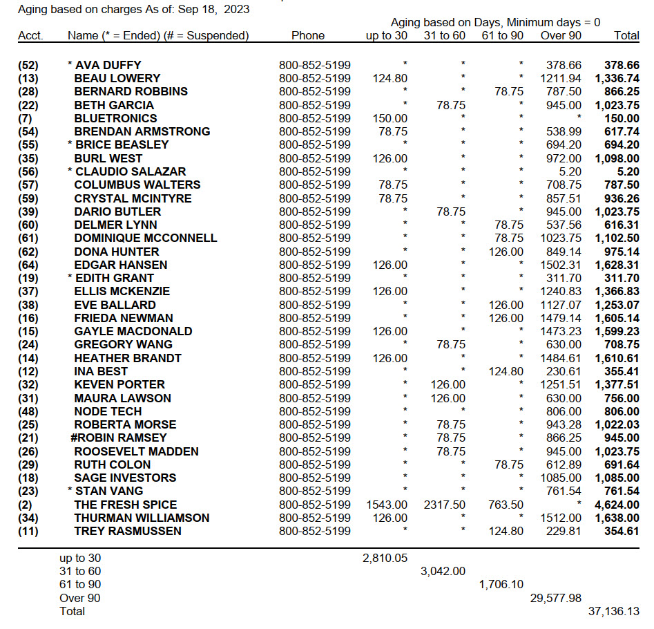 The aged AR report, along with the customer list and posting report, form what we think of as the three "main reports" in Trash Flow. The most common use for this report is to simply get a list of who owes but here are some others: