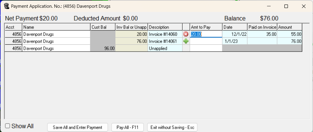 - If enough money is available Trash Flow will enter the right dollar amount to pay off the invoice in the Amt to Apply column. If there's not enough it will enter the available unapplied.