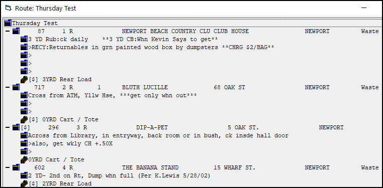 You must have both the Billing and Routing modules of Trash Flow in order to charge per pickup. Enter a rate/bill code for every customer along the route reflecting how much you want to charge for every pickup. This can be on the customer's Rates tab or on the Pick-up line of a container placement. Add the customer to the route (if this has not already been done). This is not done any differently from other types of routes in Trash Flow, but keep in mind that the charging process will account for service types, alternate week pickups, and whether or not a placement is assigned to the route.
