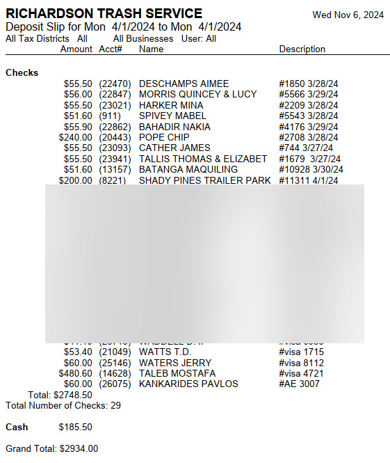 Trash Flow has several ways to get a list of payments recorded for a given day or a range of dates.