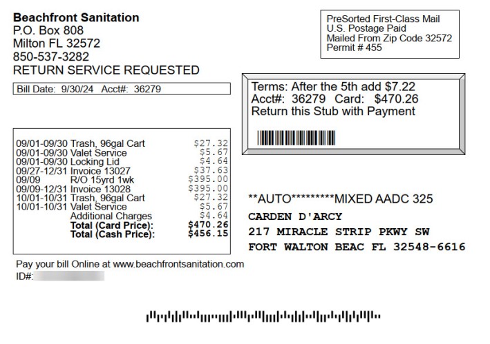 Your bills should now list the permit number. If you print bills sorted by CASS Trash Flow will help you submit the batch to the post office and show the correct presort information on bills.