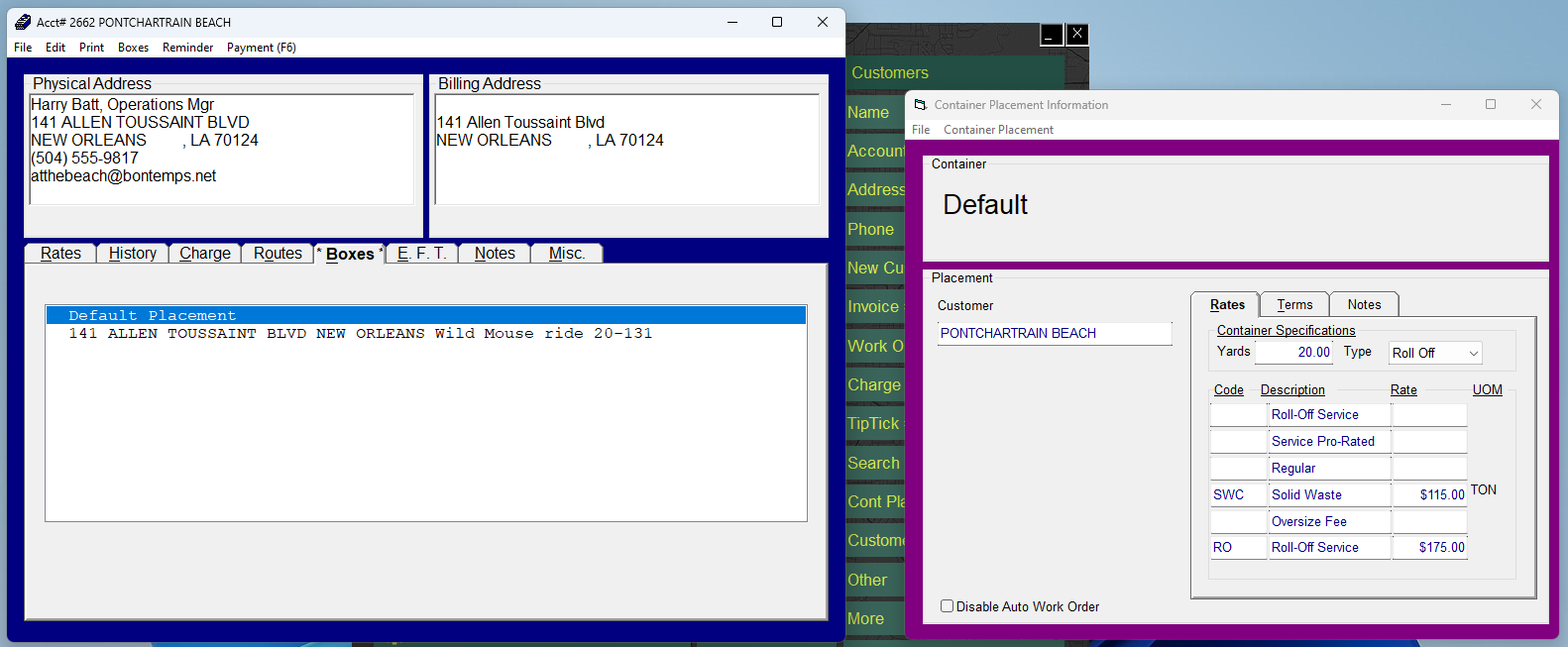 Anytime you create a new container placement on this customer's account it will automatically fill in the available information from the Default. None of this is set in stone—you can always edit the information on the new placement—but it's a handy shortcut when you have a customer who gets many of the same variety of container.