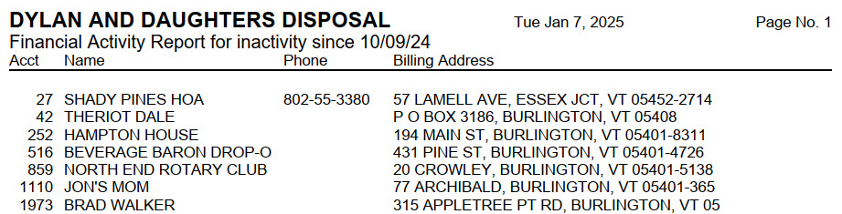 - Enter the value you want in Number of Days Inactive; Trash Flow will look for all customers that have had no charges or payments in that number of days.